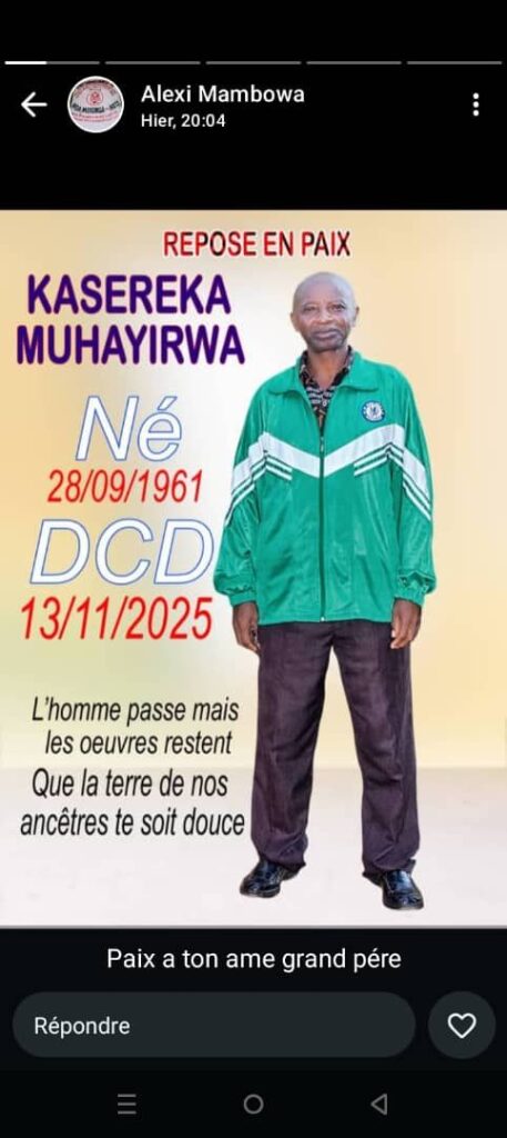 Bon après midi à tous ici, je suis en deuil, les ADF ont décapité mon oncle paternel, il est victime du massacre d’hier à Byambwe dans le poste Mambowa où il a été économe pendant longtemps